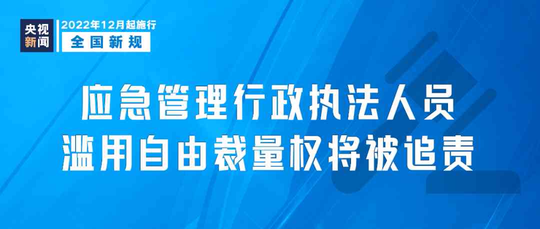 《应急管理行政执法人员依法履职管理规定》12月1日起施行,明确应急管理行政执法人员在履职过程中依法追责的情形,包括选择性执法或者滥用自由裁量权,行政执法行为明显不当或者行政执法结果明显不公正等。
