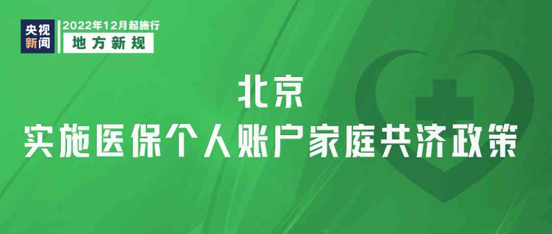 北京医保个人账户家庭共济政策12月1日起正式实施,北京市参保人员须通过北京医保公共服务平台完成个人账户家庭成员共济备案,方可享受家庭共济相关待遇。