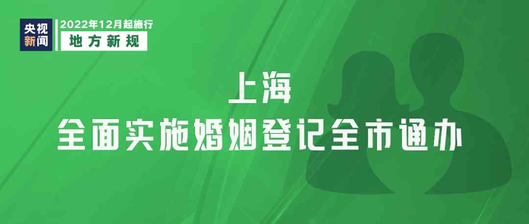 《上海市内地居民婚姻登记全市通办实施方案》12月1日起实施,当事人双方是内地居民,且双方或一方是上海户籍,可以在上海16个区的任一区级婚姻登记机关办理结婚登记或离婚登记。