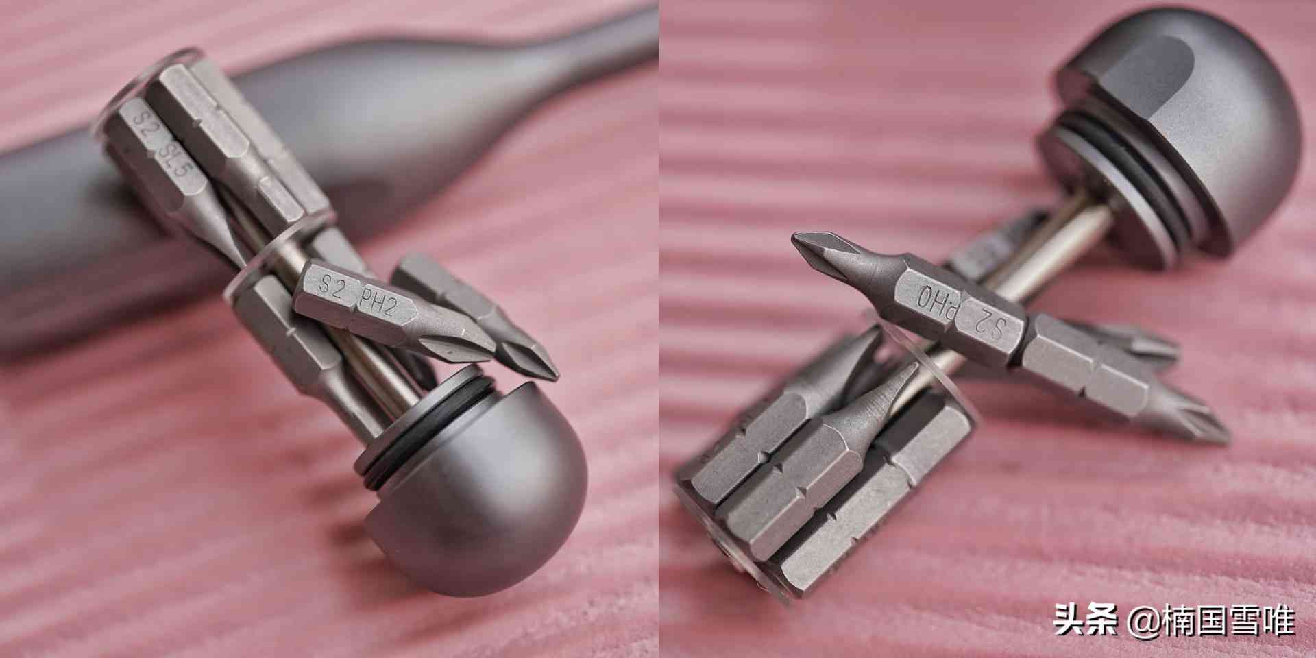 这款双动力螺丝刀的批头有36支;依旧采用超级S2合金,质量杠杠的;转轮手枪弹夹版的设计,很酷,很硬核,很喜欢;虽然套在杆上有些松垮,但是依旧是喜欢的硬核设计;每一个弹夹能过容纳6枚批头,加起来就是12枚;可以满足常规使用;如果需要更多批头,那就携带单独的批头收纳进行使用;