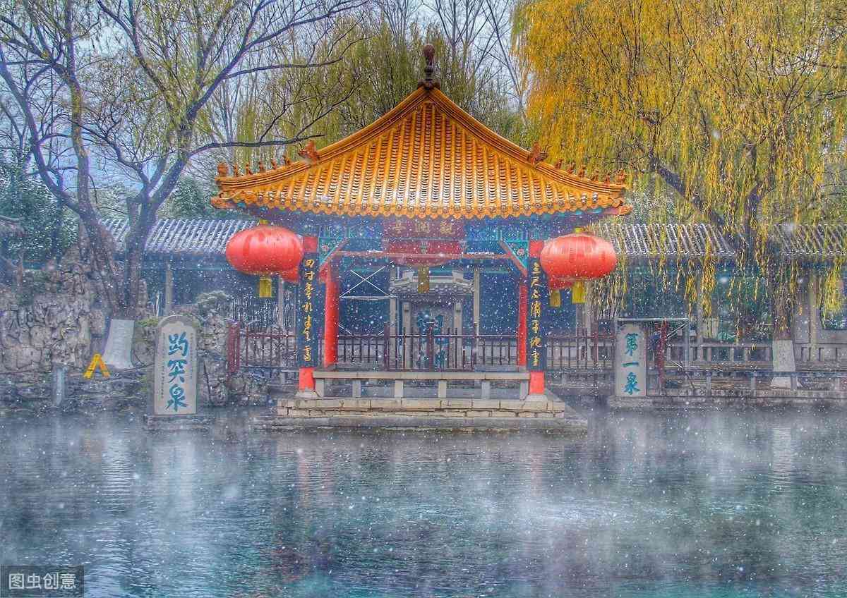 济南趵(bào)突泉,济南是著名的泉城,趵突泉分三眼从地底喷涌而出,势如沸腾,位于旧城区西南的趵突泉公园。趵突泉名传千古,留下许多赞咏佳句,如元代赵孟頫所咏“云雾润蒸华不注,波涛声震大明湖”,宋代曾巩赞咏“润泽春茶味更真”。