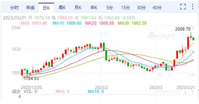 北京时间3月21日15:02,现货黄金价格回落至1974.56美元/盎司,仍保持在高位。伴随着金价攀升,A股市场的中金黄金、山东黄金、盛大资源等黄金概念股也持续上涨,3月3日上市的新股四川黄金(001337)已收获13连板。