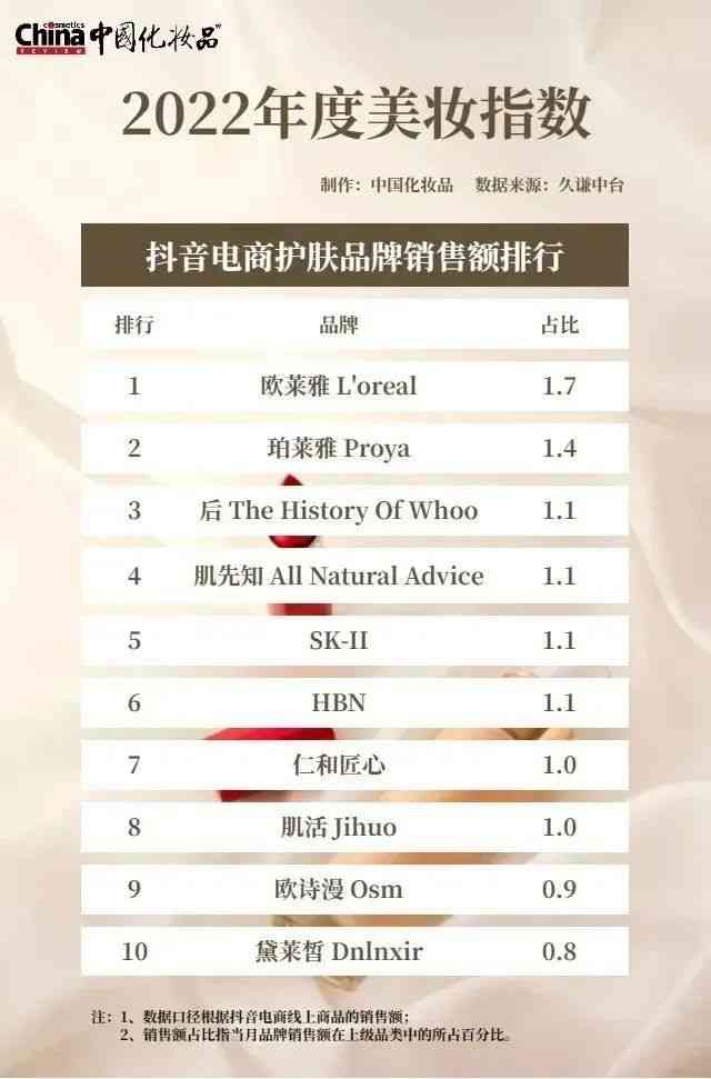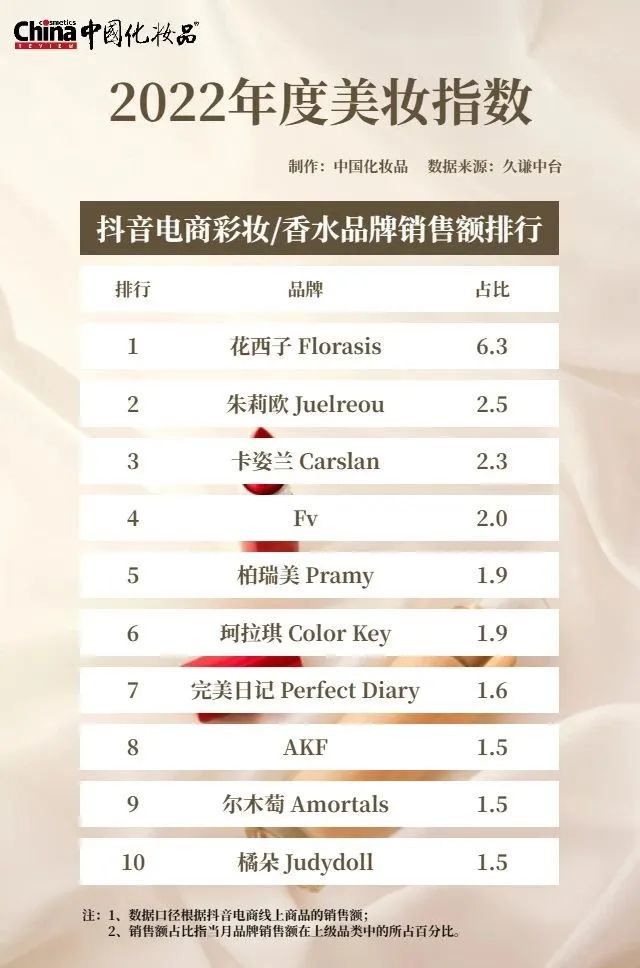 抖音电商的2022年度美妆指数,与天猫、京东的差异较大。