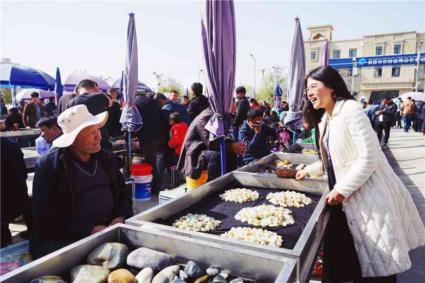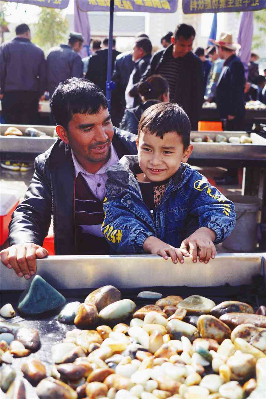 在和田玉的交易市场,也许是周末的缘故,看到很多小朋友和大人一起出摊,从小耳濡目染,和田玉的品相她们应该也懂得一二了。