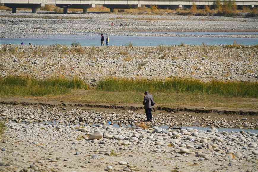 和田玉交易市场对面不远就是著名的玉龙喀什河,远远的就可以看到很多人在这里寻寻觅觅,这条河里盛产白玉、青玉和墨玉,自古以来是和田出玉的主要河流。也是很多人来到和田,都会来走一走,找一找,碰一下运气的河。