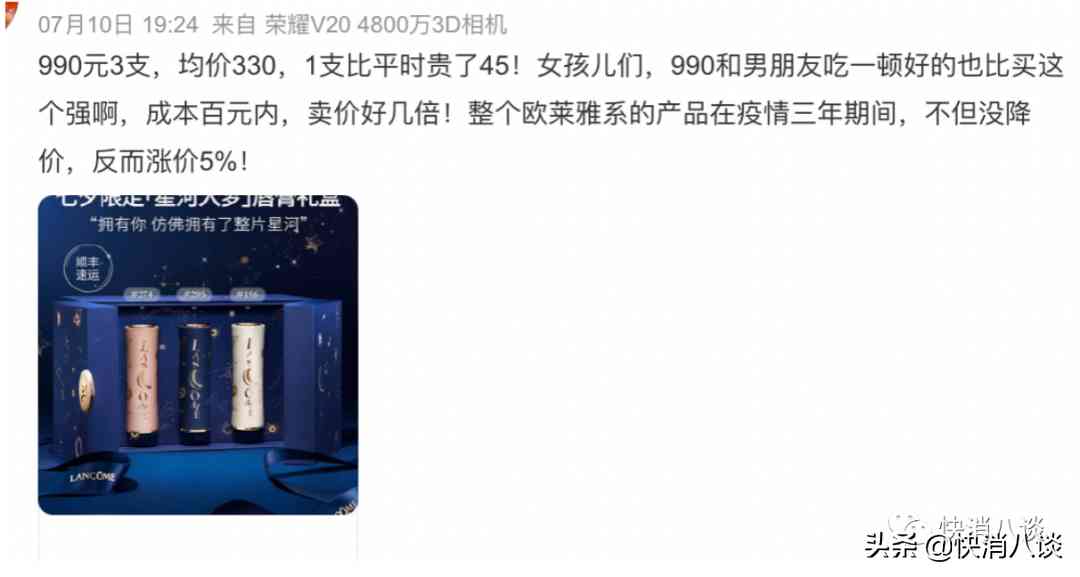 还有网友称“早知道多囤几瓶了”“还是在免税店买,旗舰店好贵”“还没等到我涨工资,海蓝之谜就离我越来越远了”……