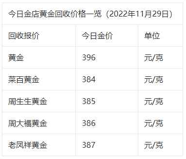 目前多家品牌金店的回收价位于385元附近。截至发稿前,中贵金库回收金条的金价为404元/克,注:中贵金库回收金价参考上海黄金交易所黄金实时变动。