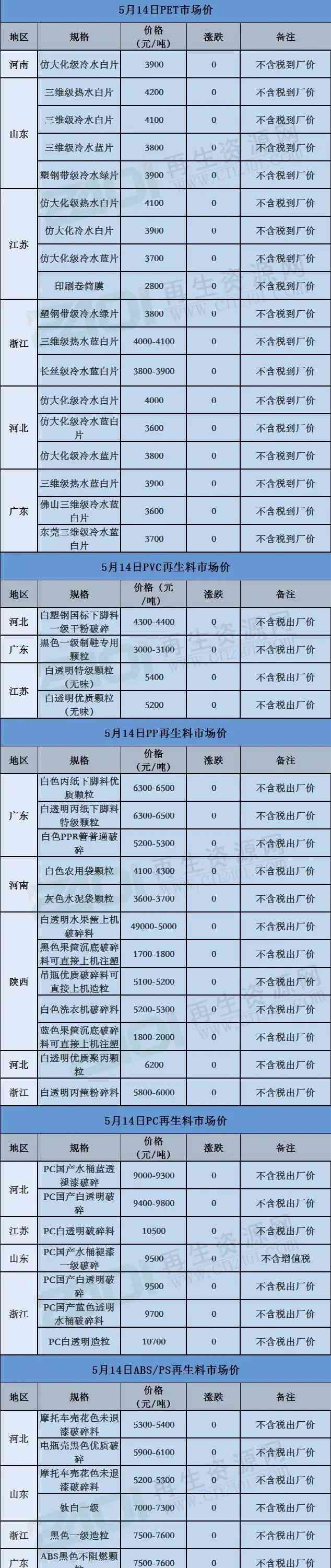 山东德州泰鼎新材料科技有限公司(5月10日起),废旧黄板收购价格上调30元/吨。调整后不带票到厂价:A级执行1810元/吨,B级执行1720元/吨,同时提醒尽量不用高栏车用高栏车加扣点。
