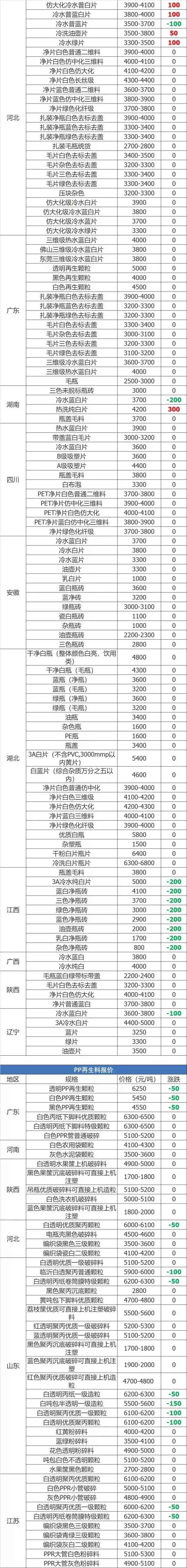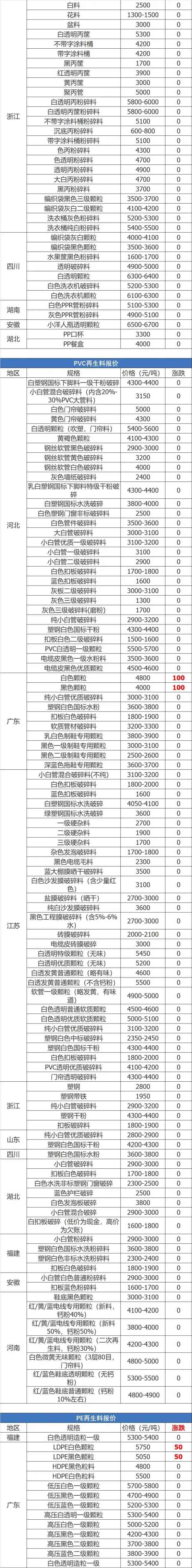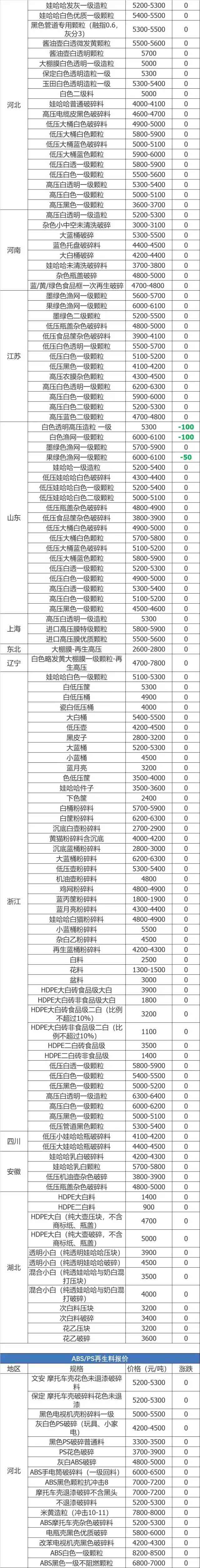 废塑料报价