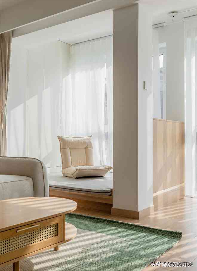 客厅结合屋主的喜好,去繁就简,大面积的原木与纯白,晕染出空间的干净底色。移除不合理的半高窗台和移门,客厅与观景阳台打通,充沛光线如潮涌入内,光与影的互动,传达着北欧风自然简约的诉求。#客厅 #阳台 #原木 #北欧