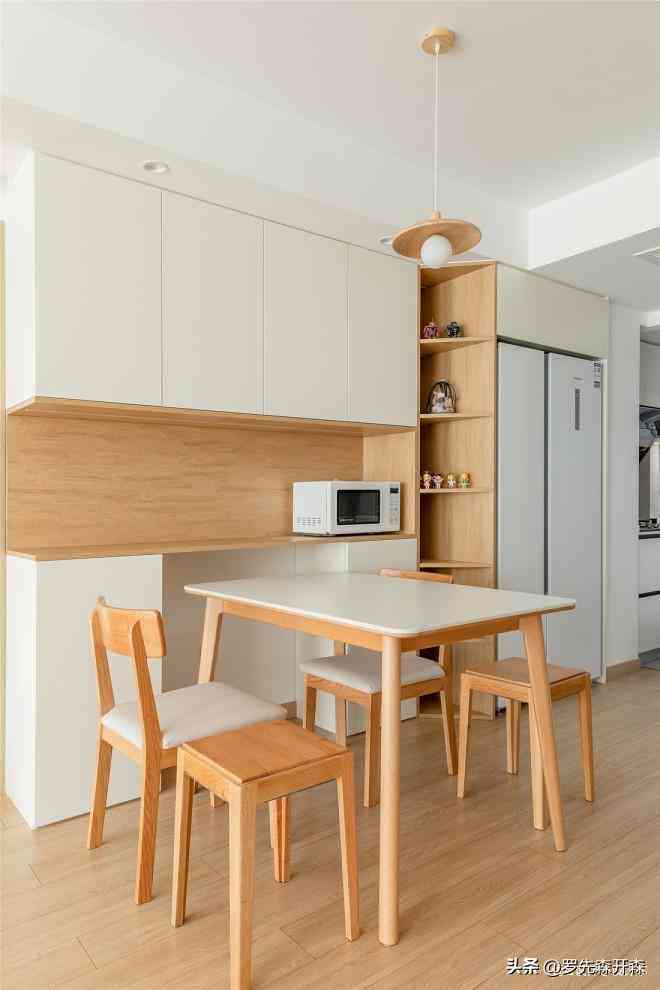 原木与白色的结合,继续演绎着餐厅的纯粹与温暖,细腿的樱桃木餐桌椅和拉长的木质飞碟吊灯,用干净的线条,勾勒出空间的轻盈姿态,又让人感受到独有的妥帖和细腻。#餐厅 #餐桌 #餐椅
