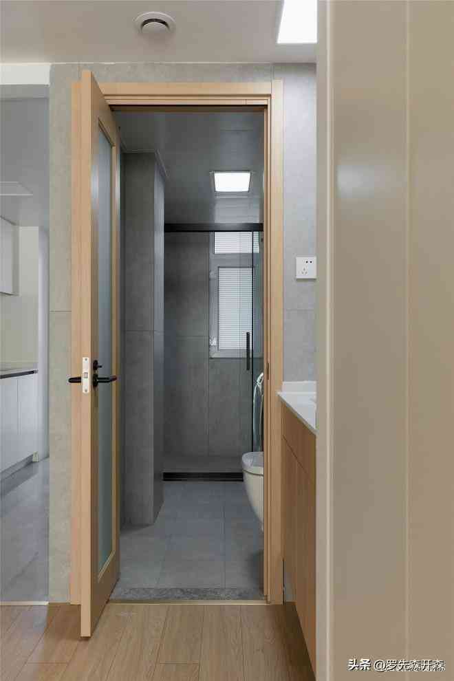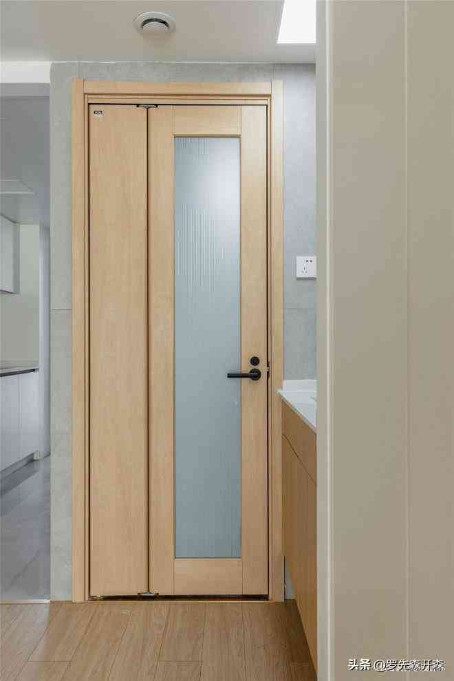 卫生间入口极窄窄,定制的三七折叠门,形式美观、开合自由,门扇嵌入透光不透人的磨砂玻璃,让卫浴变得更为私密。#卫生间 #干湿分离 #折叠门