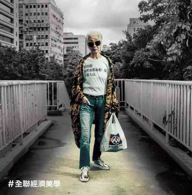 到了2017年,全联超市将主视觉从年轻人换成老年人,且将经济美学主张印在了T恤上,摩登的爷爷奶奶也紧追潮流,演绎霸气时尚,呈现一种新的时尚风格。传达在全联不仅年轻人够酷,老年人同样是流行。