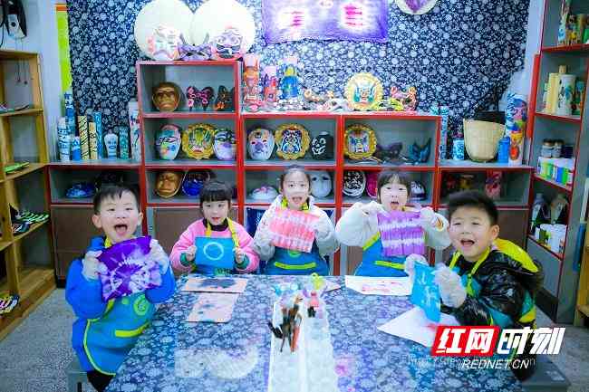 “这是孩子们去年元旦做的傩戏面具。”教学副园长姚昕说,侗族傩戏以惊险神奇著称,随意模仿存在危险,“于是我们给每位孩子发了一个白色面具,让他们发挥创意,将五颜六色的黏土粘上去,动手感受侗民俗文化。”