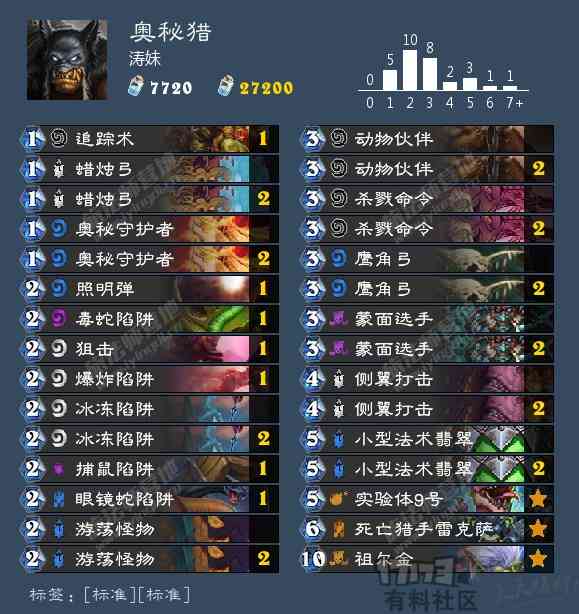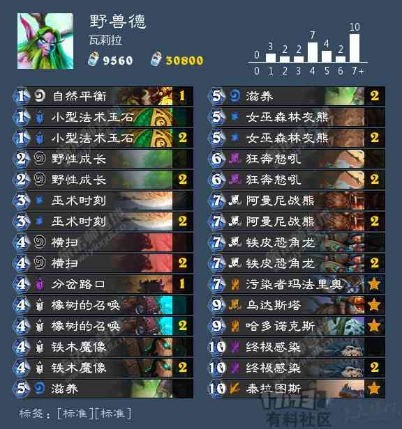 在版本初期我们推荐过一套任务野兽德,从6费以上的随从带的跟这套几乎一模一样。因为这些随从之间可以相互配合和呼应,并且跟德鲁伊的任务可以形成联动,感兴趣的话可以把这套里的“铁木魔像”和“女巫森林的灰熊”换成小德的任务牌和“被诅咒的门徒”就可以啦。