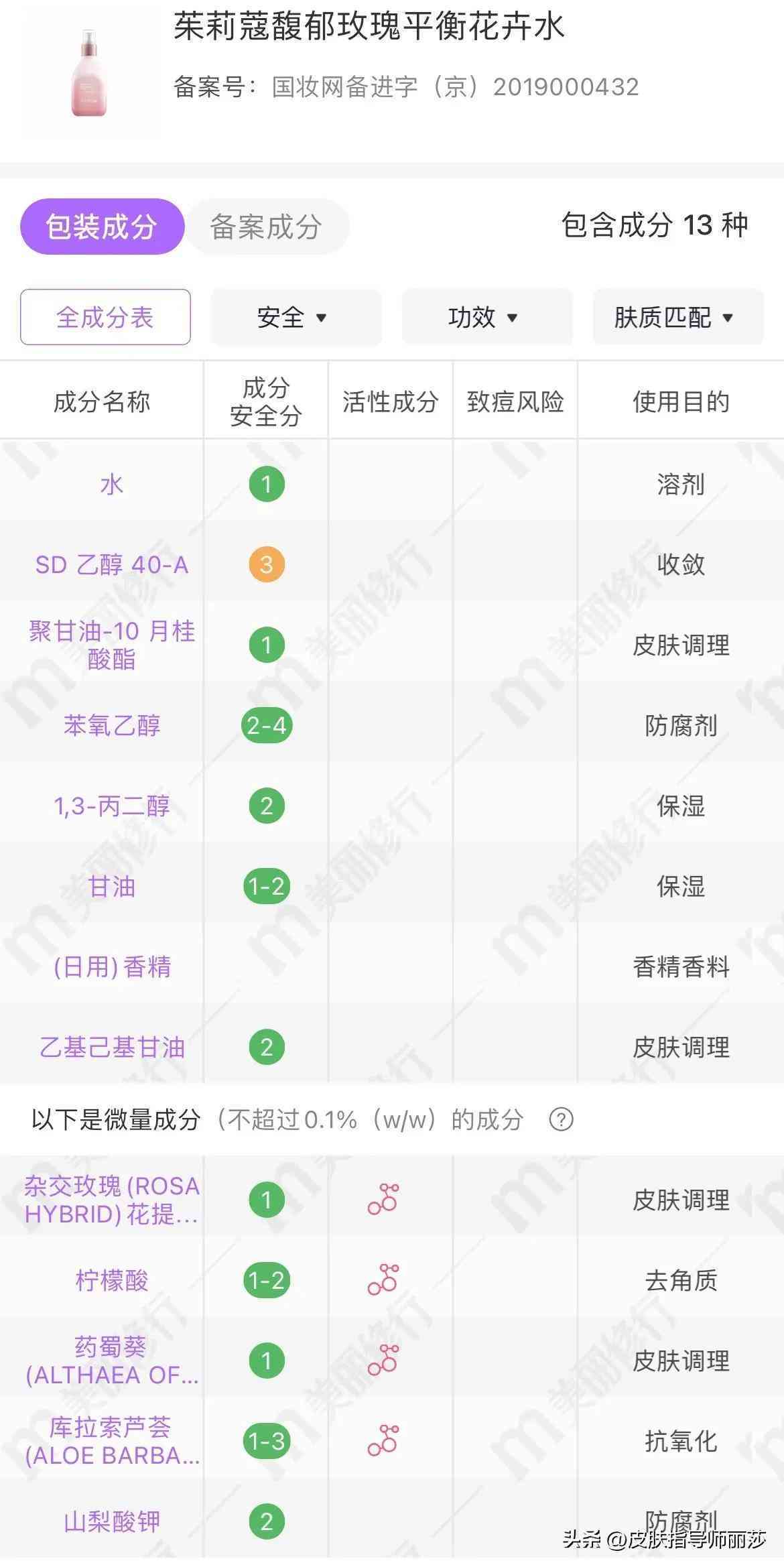 也有个分界线,微量成分以上的都是些有效安全的成分:调理剂、保湿剂、抗衰成分。确实对得起‘元气水’这个名称。