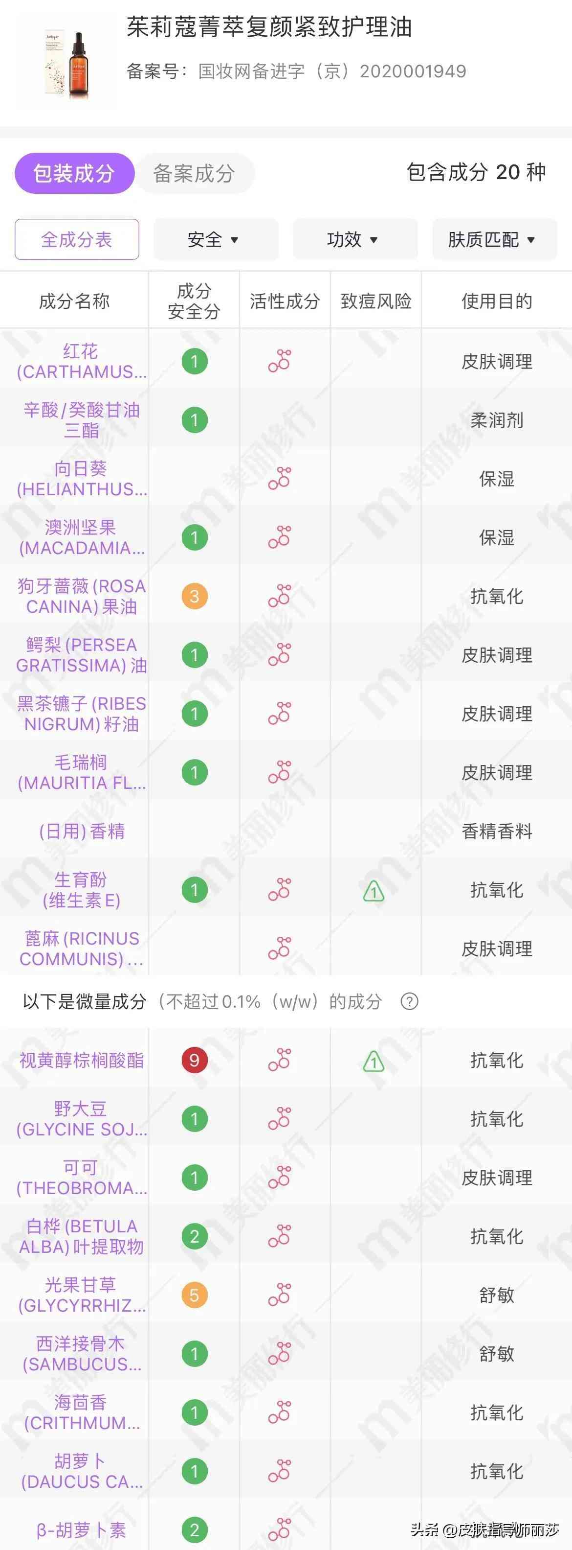 都是对皮肤有益的成分,这款精华油个人强烈推荐,我本人也打算去入手一瓶用。