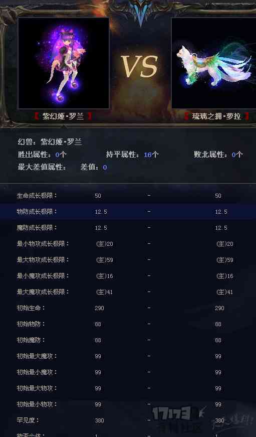 再看看攻击比较稳定的紫鸡对比萝拉同样是一模一样的属性。