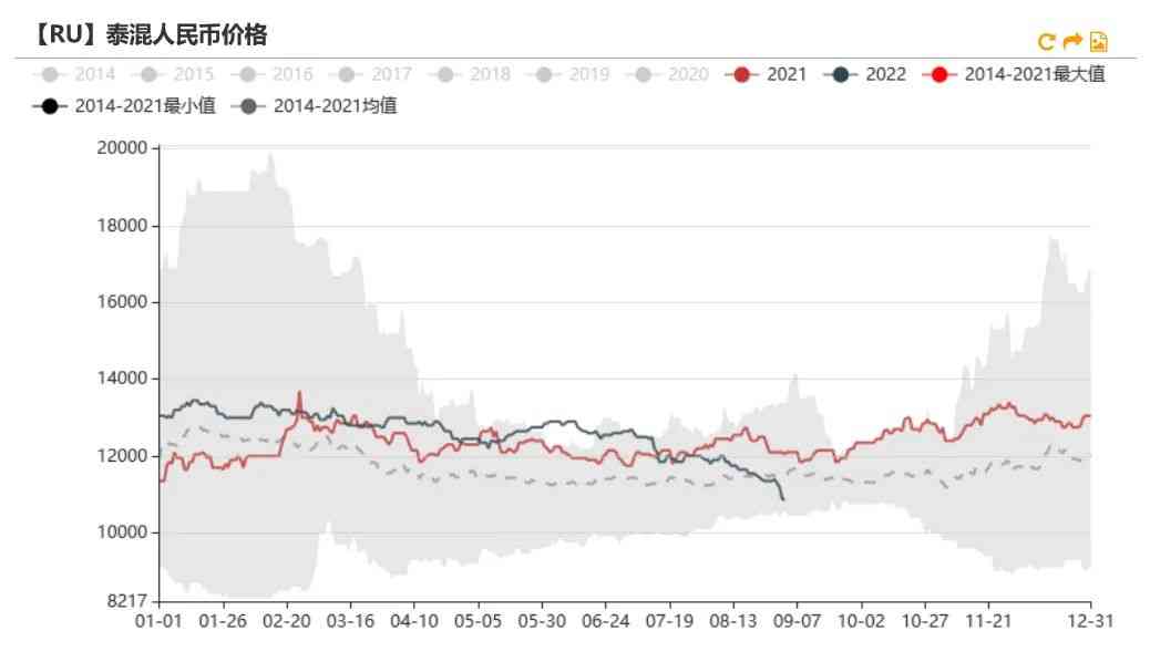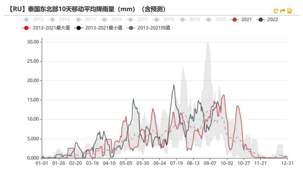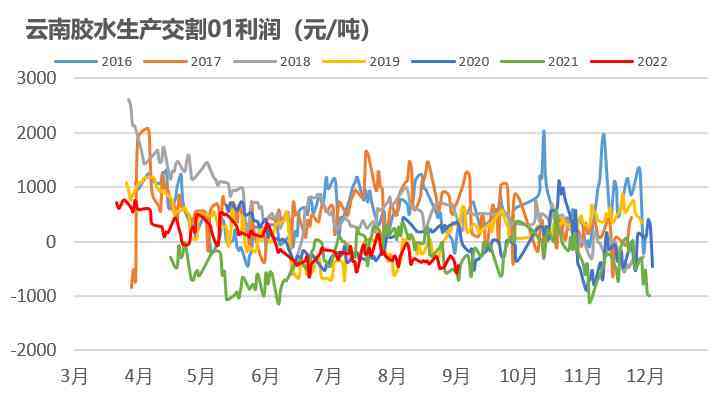 上游利润情况不佳。盘面下跌后,上游加工利润持续下滑,维持低位,从估值来看偏低估。9月上旬云南降雨预计小幅增加。根据路透数据显示,9月中上旬云南降雨量将小幅增加,或影响割胶。