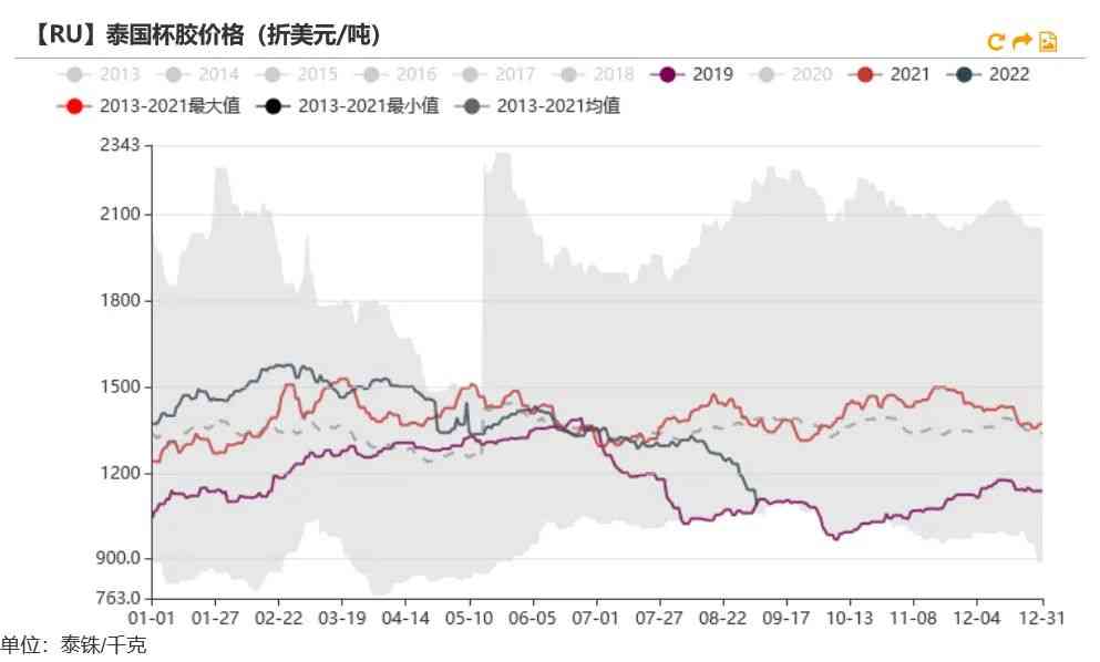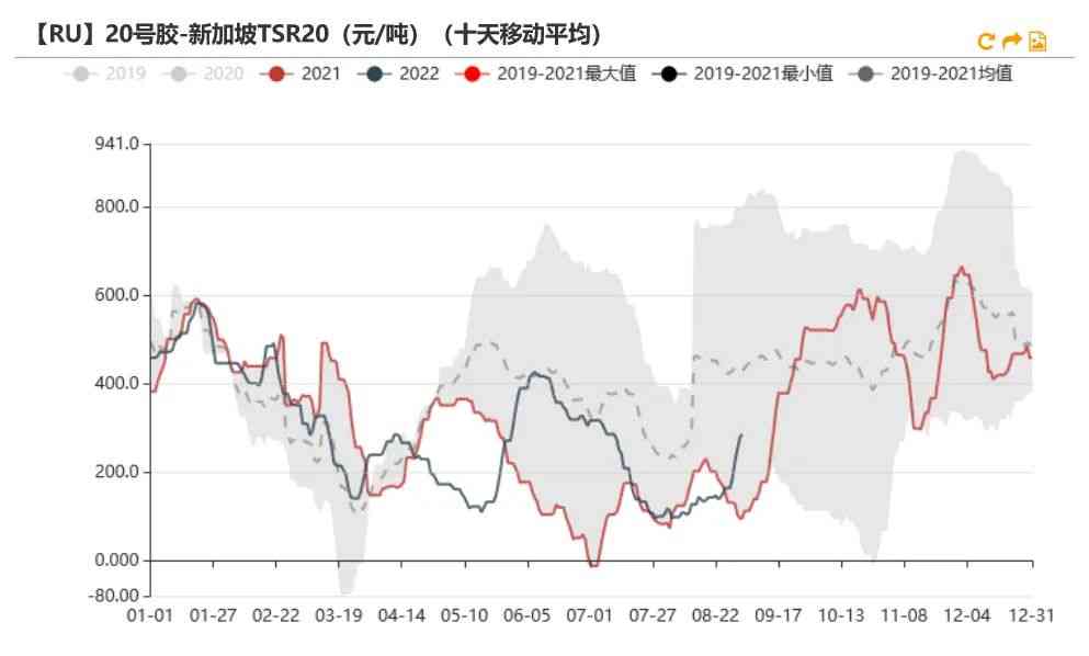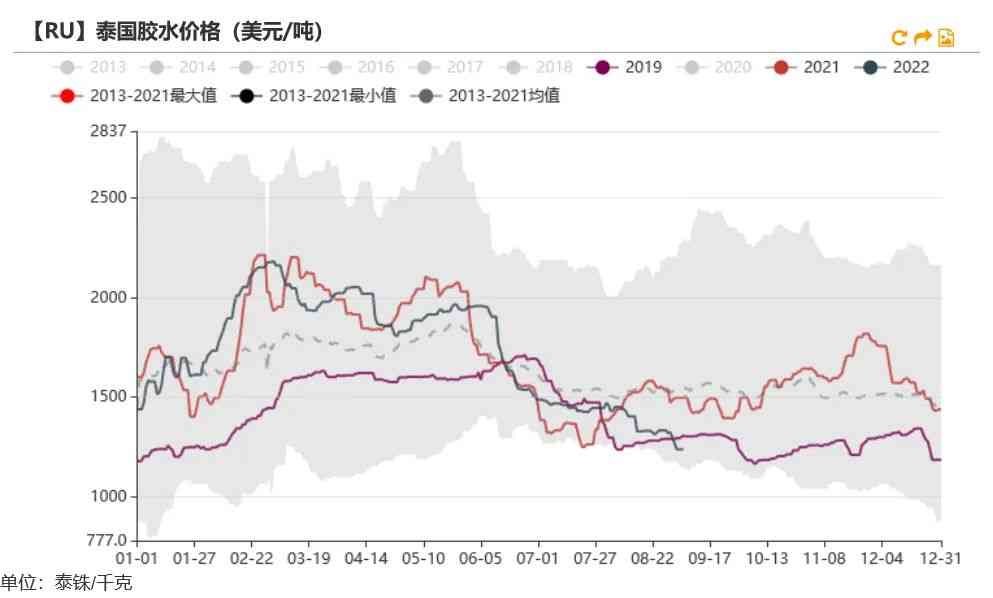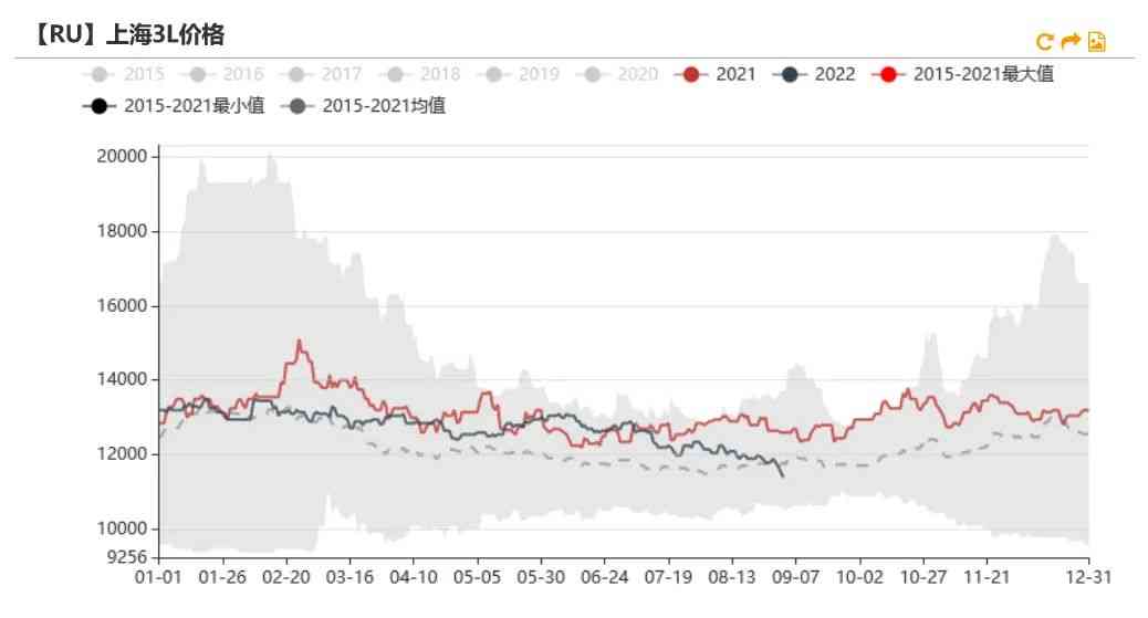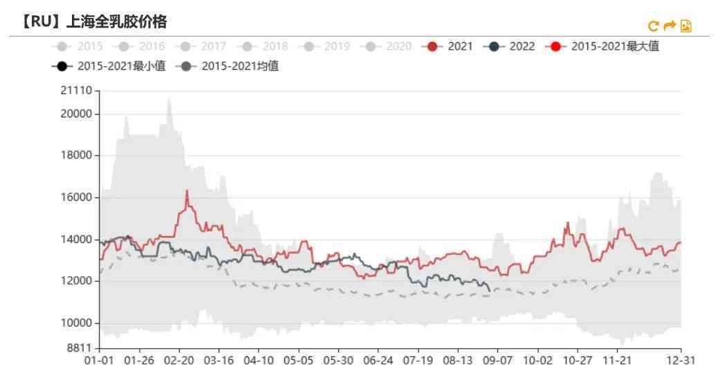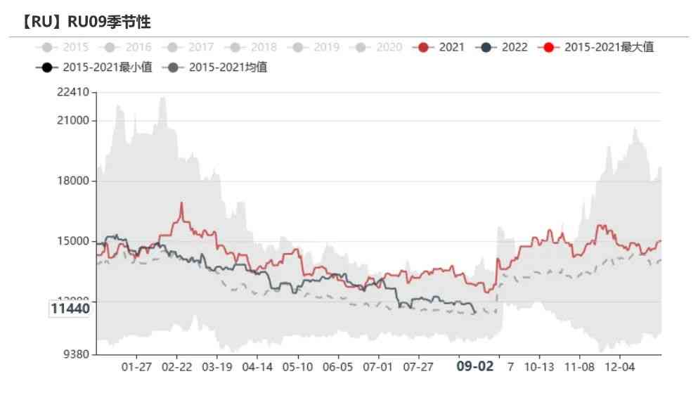 新增仓单略多于去年。根据上期所数据,截至目前,5月开始的RU仓单新增数量为3.45万吨,略多于去年的2.38万吨。预估上期所新胶库存少于去年同期。根据本周公布的仓单到期数量可知,将有21.19万吨老胶仓单将在11月份进行注销,而目前RU期货库存小计为28.88万吨,因此有7.69万吨不会被注销,而其中有2.6万吨烟片仓单,因此推测新胶的上期所库存为5.09万吨,低于2021年的5.92万吨。
