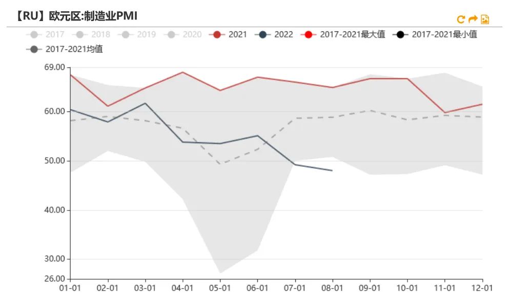 消费信心触底回升,PMI继续下探。欧美消费信心指数均在7月触底后出现回升,后续需要关注其回升持续性;然而8月份美国PMI新订单与欧元区制造业PMI指数均继续下探,目前处于50以下。