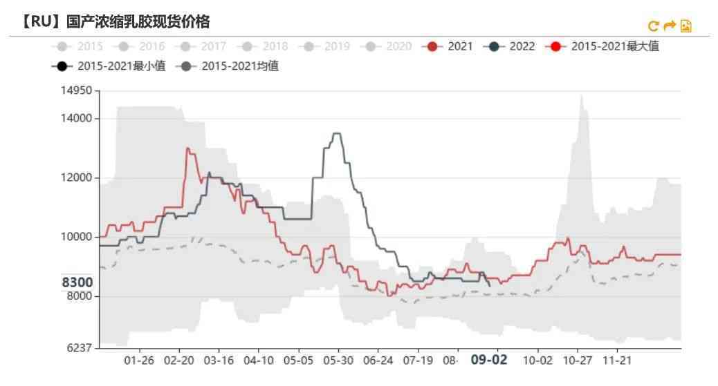 9月2日RU主力收盘价为12280元/吨,较上周下跌390元/吨,环比下跌3.08%。NR主力收盘价为9440元/吨,较上周下跌660元/吨,环比下跌6.53%。RU-NR扩大至2840。