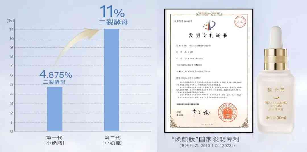 ▲<植卡美焕采精华液粤G妆网备字2022032786>02二裂酵母添加量超过11%嫩肤、紧致、舒缓效果看得见植卡美的这款小奶瓶,同样以二裂酵母作为核心成分,目前已经升级到第二代。它的二裂酵母添加量高达11%,据小编所了解,这个含量可能是目前市面上的天花板。据说,某棕瓶的添加量是10%。