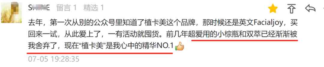 ▲图源美丽修行04消费者真实反馈目前,这支「淡纹小奶瓶」也已累计售出253349瓶。体验过的粉丝,都给出了非常高的评价,诸如“我心中的NO.1”,“清爽不黏腻,吸收快”,“细纹改善”,“通透紧致”,“皮肤状态好”等等之类。