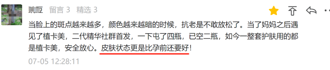 图源@麻宁@咸鱼DS,41岁,二胎妈妈“生娃后我选择了母乳,这段时间天天起夜奶娃,还要哄娃换尿布,基本没睡过整觉。但我连着用二代小奶瓶,早上起来皮肤很嫩,滑滑的没有毛孔,看不出垮态。素颜出门一连3天被夸皮肤好,说熬夜都没人信。”