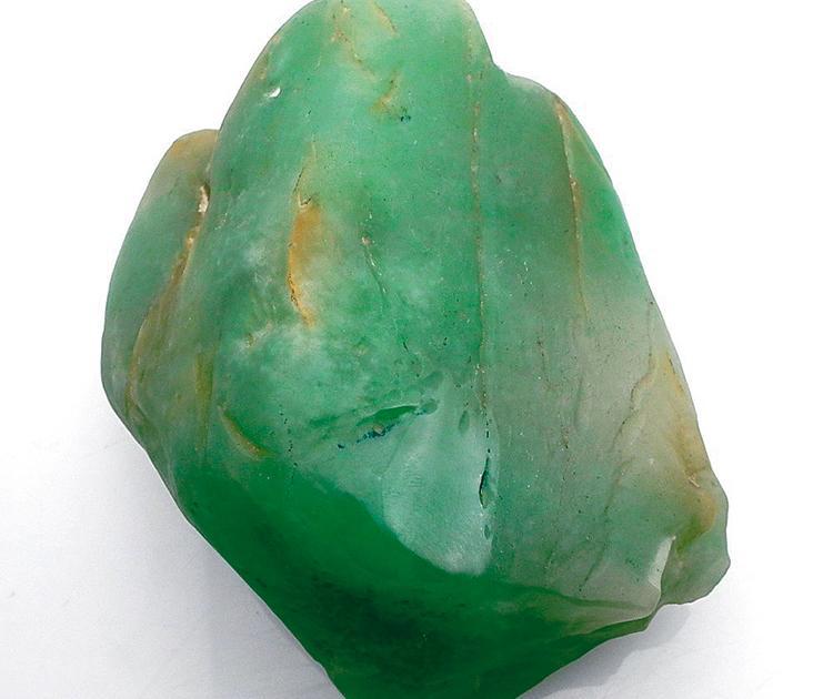 现云南市场上常见的石英岩玉主要产自缅甸,也是翡翠矿的伴生矿,在开采翡翠时一起开采出来。下图为和翡翠伴生的石英岩玉毛料。