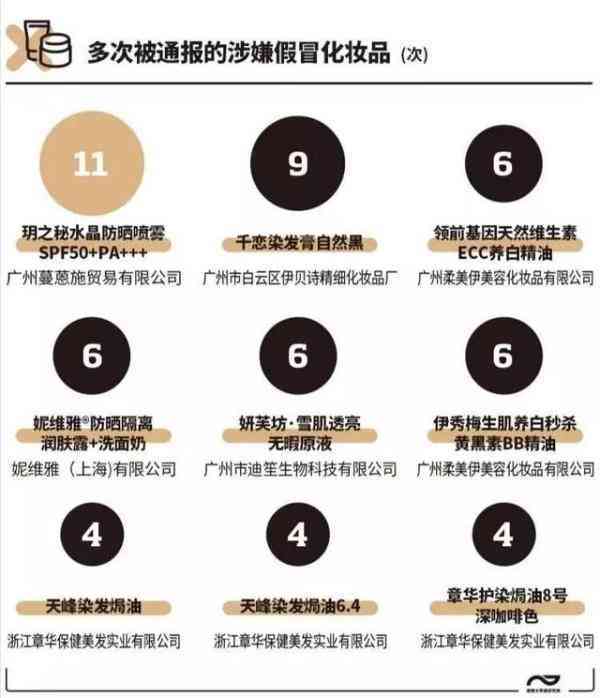 南都大数据研究院曾梳理2018年以来国家及地方药监部门通报的2000多批次不合格化妆品,经监管部门现场核查及企业确认,其中398批次为假冒或涉嫌假冒产品(染发膏占比69.6%,防晒霜/喷雾占比12.6%)。