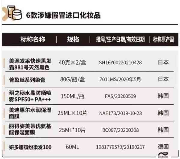 其中,“普盈丝系列染膏P13”(80g/瓶/盒,7011MS/2020年5月)标称日本资生堂出品。经上海市浦东新区市场监督管理局现场核查,经销企业声称是假冒产品。该产品在国家药监局进口化妆品数据库中也查询不到。