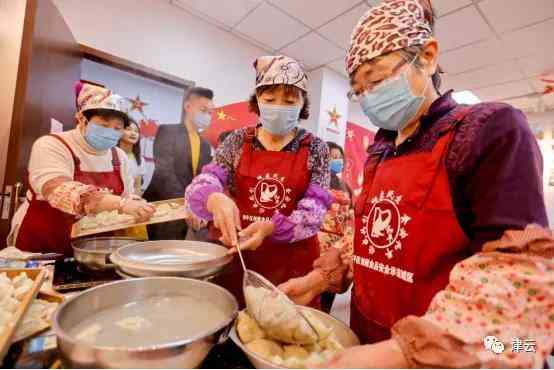 翠生生的白菜、粉嫩嫩的肉馅儿、黄澄澄的鸡蛋……配上各种调料和成一盆盆喷香的饺子馅儿。在和平区南营门街道文化村社区党群服务中心,社区居民于英华和其他7名社区的志愿者阿姨早早就来到了活动室,忙着为留津过年的社区工作者、物业员工们包团圆饺子。