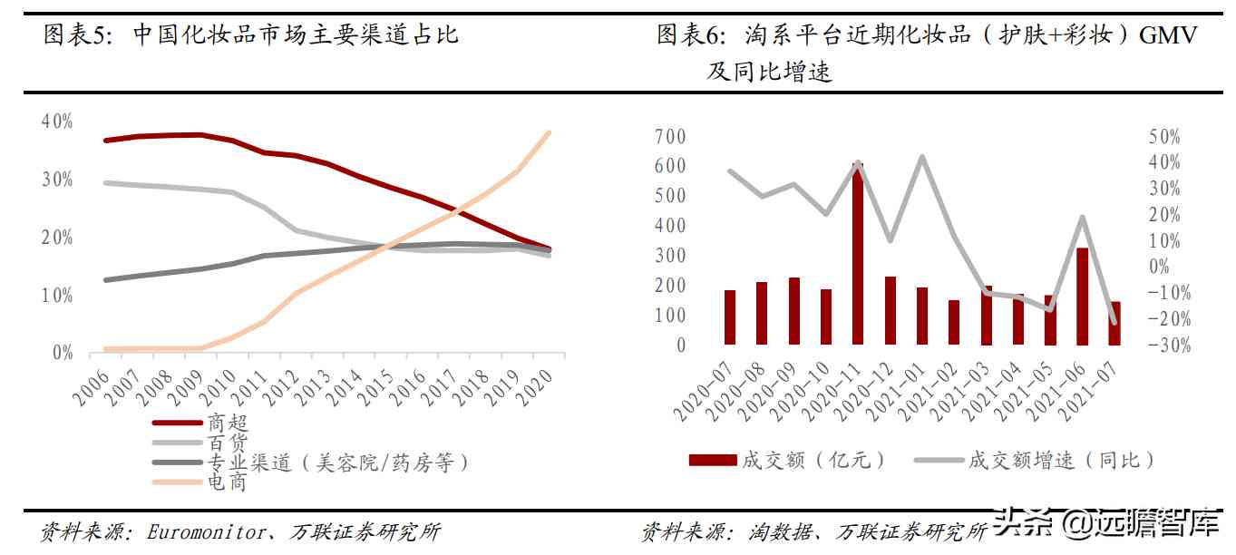 线上化妆品消费火爆,线下百货商超渠道占比下滑。