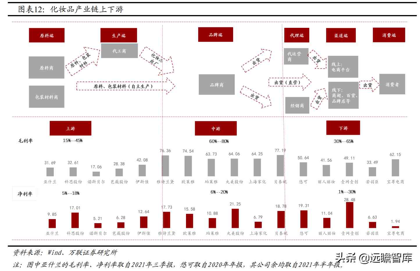 1.2 化妆品产业链:中游掌握定价权,品牌端利润率最高