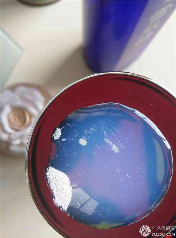 以前一直以为雪水是乳白色的,倒在神仙水的盖子上准备拍照的时候才发现原来真的是蓝色的,好美的颜色,颜值真高啊。(雪水盖子是银色的,照片中呈现红色是反光了我手机背壳的红色)