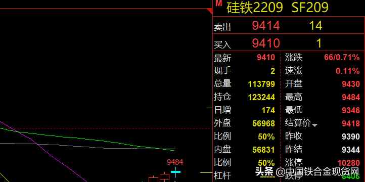 期货市场:今日硅铁期货主力2209合约震荡运行,盘中最高9484点,最低9346点,当日增仓174手,总持仓123244手,成交量较上一交易日减少,盘面录得一根十字小阴K线。在黑色系整体上涨的带动下,硅铁走出600点的反弹,盘面进入震荡期,多空双方开始胶着。虽有政策对经济的刺激,但终端需求并未实质性改善,目前依旧是长期下跌后阶段性反弹,维持昨日观点:上方高度看9600一线,操作上可在上方压力附近逐渐止盈多单。(仅供参考)