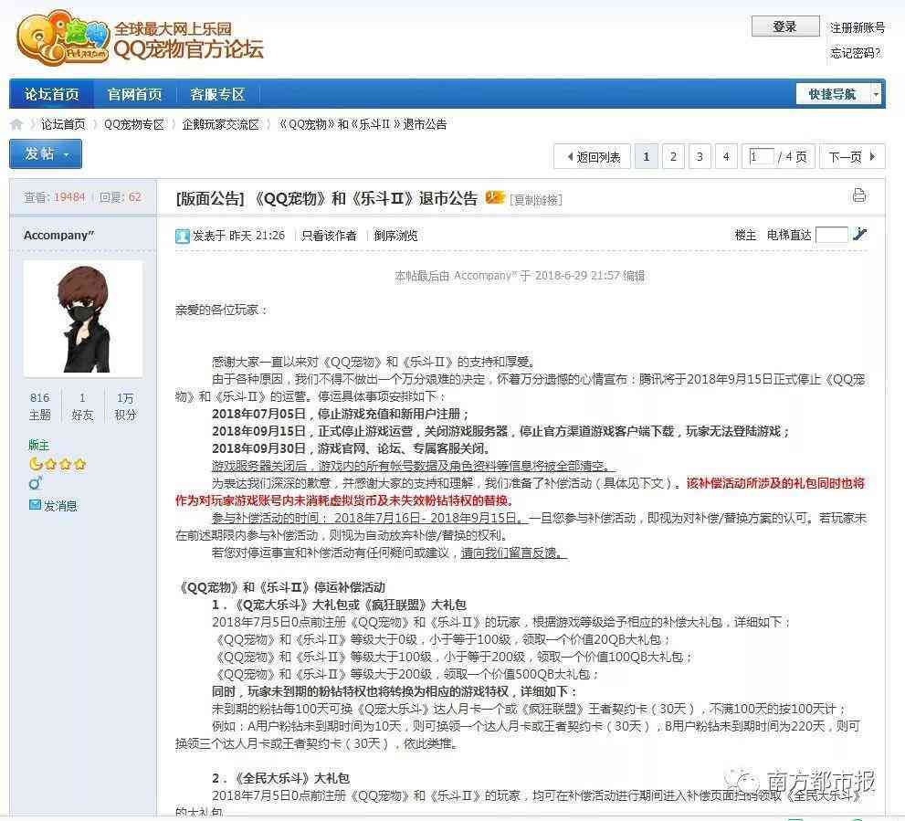 腾讯在官方论坛发布公告称