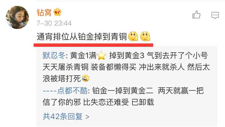 二楼玩家:通宵排位从铂金掉到青铜!!别伤心,看评论里永远有比你还要惨的玩家!黄金一满星到黄金三、铂金一掉到黄金二!哎,你们都经历了什么?