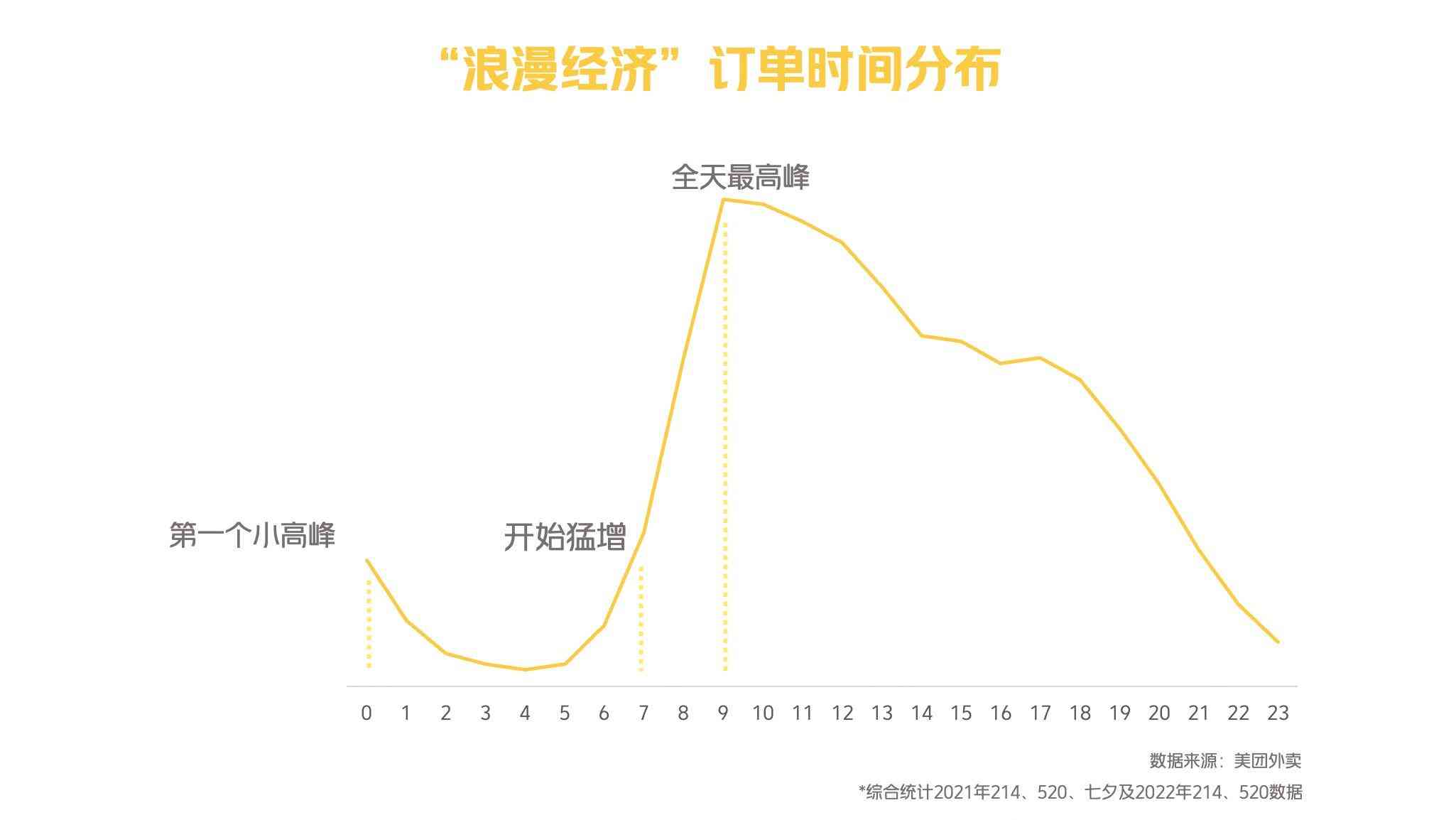 即时需求,即时满足。美团外卖统计分析了浪漫型节日中订单下单时间分布,也印证了这一趋势。