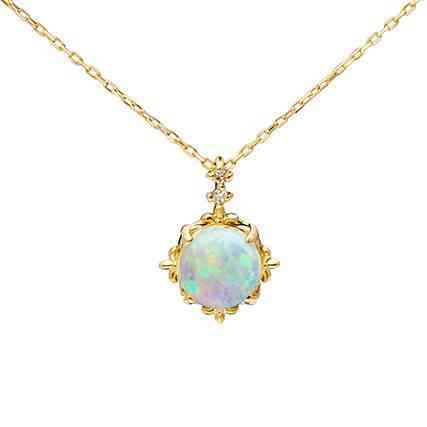 展示:18k金镶嵌爪镶白欧泊项链