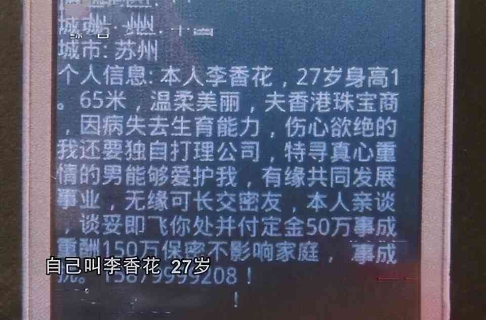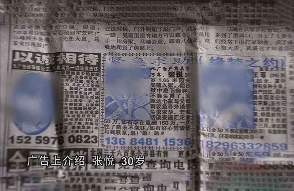 “张悦,30岁。1.65米,丈夫因为爱赌入了狱。丈夫因为在狱中落下病根,不能生育。为救自己的家庭,商议急寻外地陌生男子求孕,若通话谈妥速汇订金50万,如有孕再重酬150万。”和小司看到的小广告如出一辙,同样的文案,同样的配图也是年轻靓丽的美女。