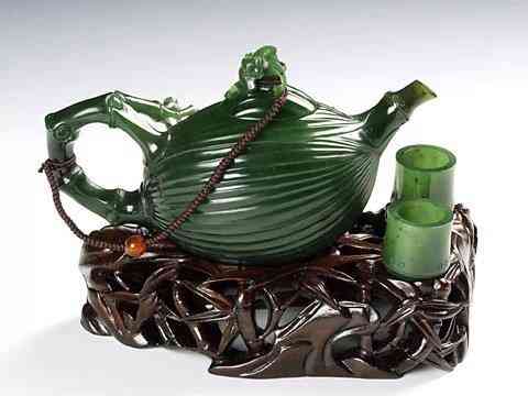 碧玉:是绿色、深绿色或暗绿色的软玉。常见为菠菜绿色。优质的碧玉也是名贵品种,但不如羊脂玉。通常碧玉不如其他品种质地均匀洁净,常含有明显的黑斑、白筋等。碧玉中的阳起石和绿帘石的含量明显增多。黑斑点多是黑色磁铁矿所致,因其颜色不均,多用于制作器皿。一般碧玉也较白玉低一个档次。