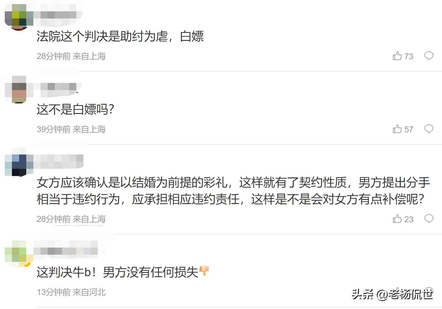 该案例一经公布,也引起了网友的广泛关注和讨论,有的网友认为法院的这个判决是在助纣为虐;也有网友认为女方应该确认是以结婚为前提的彩礼,这样就有了契约性质,应承担违约责任,这样是不是会对女方有点补偿。