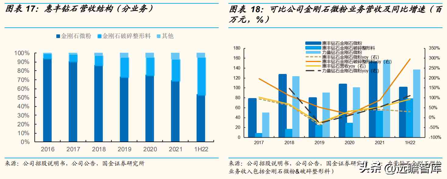 公司成立十多年来专研金刚石微粉生产,产品覆盖全品级、下游应用广泛,募投项目研发中心升级(投资7345万元)涉及的研发课题包括粉碎法D50小于50纳米金刚石制备、高端专用金刚石微粉制备、培育钻石研究等前瞻性方向,储备未来长期增长点。22H1公司产品在第三代半导体行业应用取得突破,销量明显增长。