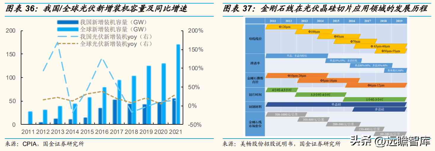 光伏产业链上游为硅料的采集及硅片的生产环节,其中硅片切割是硅片生产环节的主要工序,金刚石线可用于硅棒截断、硅锭开方、硅片切割,具有切割速度快、切片效率高、硅料损耗低、环保等优势,能够大幅降低线耗成本。