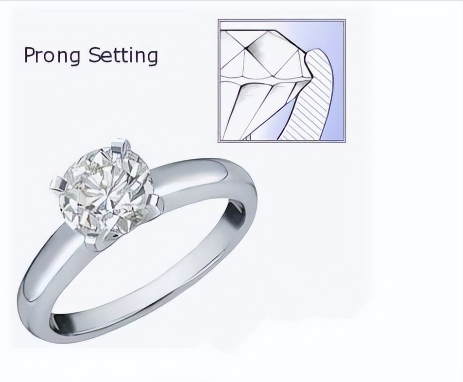 是市场上最受欢迎的独粒钻饰镶嵌方式,即用金属爪(柱)紧紧扣住钻石。