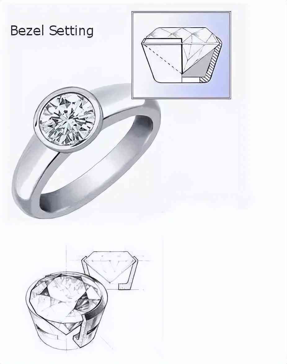 是用金属边把钻石的腰部以下封在金属托内,用贵金属的坚固性防止钻石脱落。