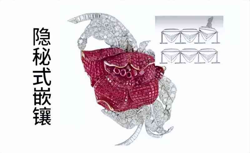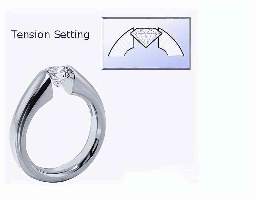 利用金属的张力固定钻石的一种镶嵌方法。具体是将钻石腰部或者腰部与底尖的部分牢牢固定住。