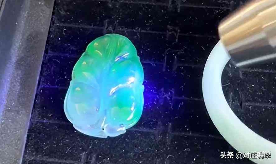 第四,打紫外线光看有没有荧光反应。翡翠出现荧光反应的可能性很多,一是b货的填充物质环氧树脂,在荧光灯下会发出荧光;二是抛光粉太多没清洗干净引起的荧光反应;三是石性杂质太多引起的荧光反应。这三种情况无论发展哪一种情况都让翡翠价值大打折扣。